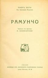 Keywords: Ramuntcho.jpg Титулна ст аница на бълга ското издание на омана Рамунчо на Пие Лоти 1850-1923 Романът е от 1897 г Бълга ското издание е от 1932 г София - Печатница Гладстонъ Transferred from http //bg wikipedia org bg wikipedia 2008-02-07 Original uploader was Maymay at http //bg wikipedia org bg wikipedia PD-OLD-70 PD-old-70 original upload log page bg wikipedia Ramuntcho jpg 2008-02-07 21 45 Maymay 414×671× 26329 bytes <nowiki> ка тинка инфо описание Титулна ст аница на бълга ското издание на омана Рамунчо на Пие Лоти 1850-1923 Романът е от 1897 г Бълга ското изд</nowiki> Books by Pierre Loti Book covers from Bulgaria |