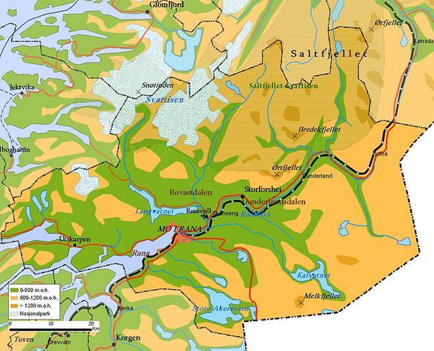 Keywords: Rana map.jpg en Map of Rana municipality Norway own Jensens 2008-12-06 Maps of Nordland Rana Norway