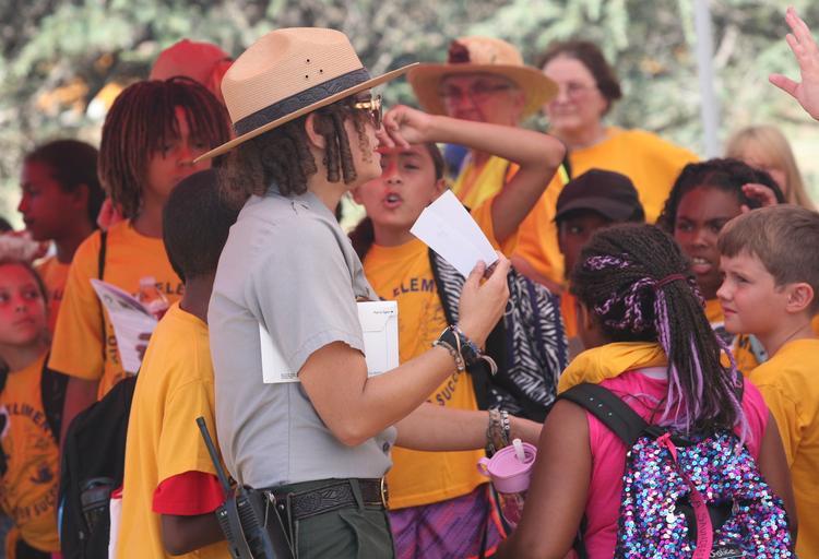 Keywords: every kid in a park everykidinapark findyourpark juan bautista de anza national historic trail juanbautistadeanzanationalhistorictrail santa monica mountains national recreation area santamonicamountainsnationalrecreationarea los angeles losangeles san fernando valley sanfernandovalley anthony c. beilenson park anthonycbeilensonpark department of interior departmentofinterior outdoor Mayor Eric Garcetti, County Supervisor Sheila Kuehl, and members of the City Council helped kick of the L.A. launch of the Every Kid in a Park program on October 15, 2015 near Santa Monica Mountains National Recreation Area. Nearly 500 local 4th-graders participated in educational activities and were rewarded with a Junior Ranger badge and a free annual pass to all federal lands. Photo credit: National Park Service. Mayor Eric Garcetti, County Supervisor Sheila Kuehl, and members of the City Council helped kick of the L.A. launch of the Every Kid in a Park program on October 15, 2015 near Santa Monica Mountains National Recreation Area. Nearly 500 local 4th-graders participated in educational activities and were rewarded with a Junior Ranger badge and a free annual pass to all federal lands. Photo credit: National Park Service.