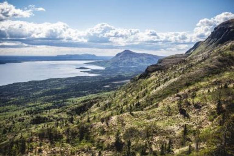 Keywords: outdoor hill landscape mountainside mountain ridge Brooks Lake from Dumpling trail, May 2016 Brooks Lake from Dumpling trail, May 2016