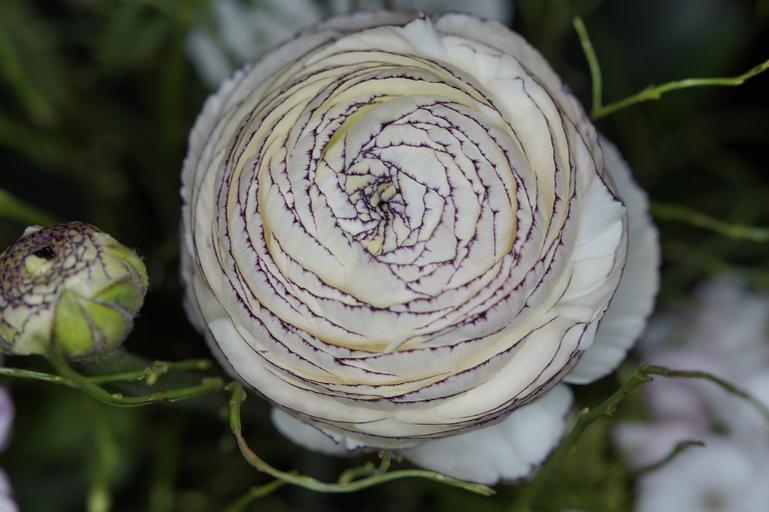 Keywords: ranunculus close blossom bloom white flower bouquet structure pattern