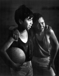 | Keywords: Raota - Al final de la lucha.jpg en Al final de la lucha a photo showing two children after playing an amateur football match as commonly happens in Argentina where it is the most practised sport Poster magazine 1976 Pedro Luis Raota PD in Argentina Law 11 723 PD-AR-Photo Not-PD-US-URAA Pedro Luis Raota Street football in Argentina |