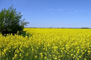 Keywords: rape blossom oilseed rape yellow sky blue spring
