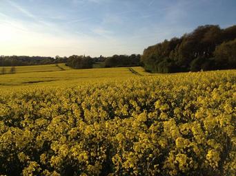 Keywords: rapeseed field sunshine yellow agriculture landscape rural oilseed farming farmland