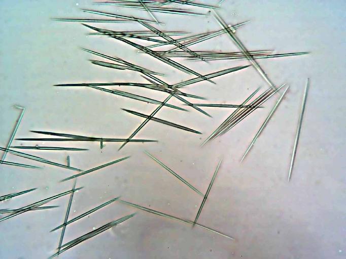 Keywords: Raphides from variegated ivy.jpg en Microscope image 600x of raphides from liquidized variegated ivy own Agong1 2010-07-11 cc-zero Unidentified Hedera Plant physiology