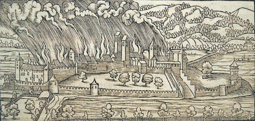| Keywords: Rapperswil - Zerstörung 1350 - Chronik Stumpf 1547-48.jpg Rapperswil Brandschatzung von Rapperswil 1350 an S Matthis abend durch Rudolf Brun Holzschnitt aus der Stumpf'schen Chronik 1547/48 Dies ist die älteste Nordansicht der Stadt Wahrscheinlich von Rudolf Wyssenbach nach einer Zeichnung von Hans Asper als Holzschnitt angefertigt Theorie von Bernhard Anderes <br> Brandschautzung Rapperswil 1350<br>« Von dem Zürychgow <br>Rapperswil von Norden Holzschnitt<br>Der Holzschnitt illustriert die Brandschatzung durch Rudolf Brun im Jahre 1350 Die Silhoutte der Stadt wird bereits in ihrer ersten Nordansicht exakt wiedergegeben Vom Halsturm zieht sich die Häuserfront nach Westen bis zu Kirche und Schloss Der Wachturm am Westende Endingerhorn des Burghügels ist in die zinnenbekrönte Ringmauer der Stadtbefestigung eingefügt <br>Johannes Stumpf Schweizer Chronik Zürich 1548 Chr Froschauer Bd II fol 140 »<br><br>Beschreibung fol 140 aus Bd II der Schweizer Chronik 1548 <br>Beschriftung oberhalb von fol 140 <br> «no dom 1350 an S Matthis abend Aber sein volck ward abgetriben und Graaff Hans selber gefangen zu Zürych lange zeyt in gfanschaf enthalten Darvon hernach mer gefagt wirt Darzwischend ward Statt und Schloss Rappers» <br>Beschriftung unterhalb von fol 140 <br> «wyl von den Zürychern erobert und besetzt Bis aber die anderen Graven von Habspurg Seinen Friden mit Zürych annemmen woltend Und die Zürycher ires züsatz »<br> missverständliche Passagen mit angemerkt Rapperswil-Jona Rudolf Brun destroyed Rapperswil 1350 'Stumpf'sche Chronik 1547/48' Gemeiner loblicher Eydgnoschafft Stetten Landen und Voelckeren Chronick wirdiger thaaten Beschreybung Stumpfsche Chronik 1547/48 Rudolf Wyssenbach ; upload by Roland zh 15 30 26 April 2008 UTC bzw sidonius 16 35 29 April 2008 UTC 150px 47 13 40 10141 N 8 49 2 914703 E alt 107 2_source exif_heading PD-old History of Rapperswil 1350 in Switzerland Military history of Switzerland History of Austria Johannes Stumpf 1547 in Switzerland Fires in Switzerland |