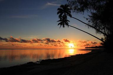 Keywords: rarotonga sunset coconut palms silhouette beach reflection