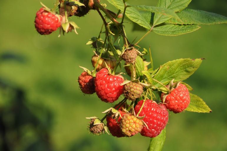 Keywords: raspberries fruit garden mature red healthy ripe fruit lean sweet fruit garden