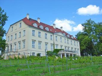 | Keywords: Rattey Schloss Park Wein Fassade.JPG Schloss Rattey in Schönbeck nahe Neubrandenburg Landkreis Mecklenburgische Seenplatte Mecklenburg-Vorpommern Das klassizistische Schloss von 1806 ist berühmt für die Weingüter ringsum Geschichtl Abriss Im Jahr 1690 verlieh Gustav Adolf Herzog von Mecklenburg-Güstrow den Besitz an Georg-Henning von Oertzen Die Familie konnte den Besitz aber erst ab 1775 nach dem Erlöschen der Familie Manteuffel im männlichen Stamm für sich nutzen In diesem Jahr übernahm Victor-Wilhelm von Oertzen den Besitz Sein Sohn Hans-Christoph von Oertzen ließ 1806 das Herrenhaus einen zweigeschossigen Putzbau im klassizistischen Stil auf den Fundamenten eines älteren Gebäudes errichten Das Herrenhaus Rattey wurde zum Ende des 2 Weltkrieges durch die Familie von Oertzen an die Gemeinde verkauft Die Familie verließ Mecklenburg nach dem gescheiterten Hitler-Attentat an dem Hans-Ulrich von Oertzen maßgeblich beteiligt war Nach dem Krieg zogen vorerst Flüchtlinge in das Gebäude ein später wurden die Räume auch durch einen Kindergarten die Post und die LPG-Küche genutzt Im Jahr 1996 erwarben zwei Bremer Unternehmer das Herrenhaus und renovierten es von Grund auf Seit 1998 wird hier ein Hotel geführt Bekannt wurde Rattey auch als nördlichstes Weinanbaugebiet Deutschlands Im Park stehen 13 Eichen deren Alter auf mindestens 700 Jahre geschätzt wird gutshaeuser de own 2009-06-10 Horst-schlaemma Own work all rights released Public domain Schloss Rattey Files by User Horst-schlaemma |