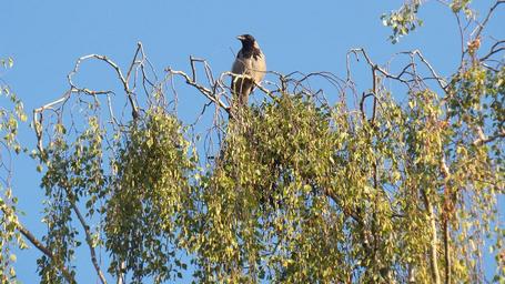 Keywords: raven bird birch tree