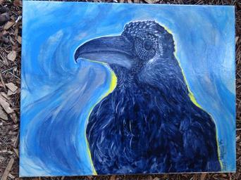 Keywords: raven crow bird feathers painting acrylic