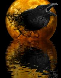 Keywords: raven crow night moon water mirroring creepy darkness mystical gloomy moonlight scary mood atmosphere mysterious spooky fear halloween horror weird frightening
