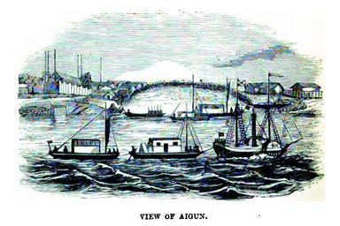 | Keywords: Ravenstein-p118-Sverbeyev-View-of-Aigun-1854.png en View of the Chinese city of Aigun now Aihui and the boats of Muraviev's Amur expedition in 1854 ru Го од Айгун ныне Айхуэй на Аму е за исованный участником экспедиции у авьева в 1854 г Illustration on page 118 in the book by E G Ravenstein The Russians on the Amur London 1861 Can be found on Google Books at http //books google com/books id _XEEAAAAYAAJ Drawing by N D Sverbeyev engraved by W Brewer иколай Дмит иевич Све беев 1829-1860 гг Drawn 1854 soon published in Russia; reproduced in Ravenstein's book published in London England in 1861 PD-old Heihe History of Manchuria Amur River Ships of Russia Nikolay Muravyov-Amursky Historical images of China China in the 1850s |