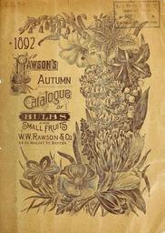 | Keywords: Rawson's autumn catalogue of bulbs and small fruits (16459081908).jpg Rawson's autumn catalogue of bulbs and small fruits / 43477019 140244 70483 Title Page http //www biodiversitylibrary org/page/43477019 1894 10 5962/bhl title 70483 Henry G Gilbert Nursery and Seed Trade Catalog Collection ; W W Rawson Co ; W W Rawson Co Biodiversity Heritage Library Rawson's autumn catalogue of bulbs and small fruits 1892 Garden Stories Boston Bulbs Plants Catalogs Equipment and supplies Flowers Fruit Gardening Grasses Massachusetts Nurseries Horticulture Nursery stock Seed industry and trade Seeds Vegetables W W Rawson Co U S Department of Agriculture National Agricultural Library bhl page 43477019 dc identifier http //biodiversitylibrary org/page/43477019 bhlGardenStories BHLinbloom bulbs plants nurseries horticulture w w rawson co u s department of agriculture national agricultural library bhlgardenstories bhlinbloom Information field Flickr posted date ISOdate 2015-02-25 CC-BY-2 0 BioDivLibrary https //flickr com/photos/61021753 N02/16459081908 2015-08-24 02 03 17 cc-by-2 0 PD-old-70-1923 Photos uploaded from Flickr by Fæ using a script W W Rawson Company catalogs |