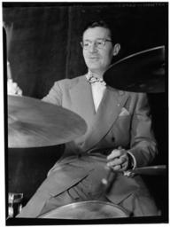 | Keywords: Ray McKinley, Hotel Commodore, New York, N.Y., ca. Apr. 1946 (William P. Gottlieb 05801).jpg en Ray McKinley Hotel Commodore New York N Y ca April 1946 Photograph by William P Gottlieb http //lcweb2 loc gov/diglib/ihas/loc natlib gottlieb 05801/enlarge html page 1 section ver01 size 1024 from Creator William P Gottlieb 1946-04 PD-Gottlieb Photographs by William P Gottlieb 1940s drum-kits Percussion brushes Drum kit sticks and beaters Ray McKinley | ||||