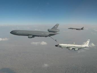 | Keywords: RC135 KC10 refuel.JPG en RC-135 Rivet Joint refuels with a KC-10 Extender over Afghanistan as a B-1 Lancer looks on 2010 own Frizbaloid 2010-04-12 RC-135V/W Rivet Joint Rockwell B-1 Lancer Aerial refueling by KC-10 Extender Aircraft in the War in Afghanistan 2001-present United States Air Force in the War in Afghanistan 2001-present |