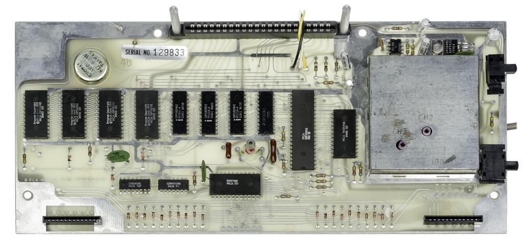 | Keywords: RCA-Studio-II-Motherboard-Top.jpg  The top of a motherboard for an RCA Studio II video game console The following list are the names and numbers of chips that appear on the motherboard <br>RCA CDP1831CE x4 <br>CDP1822NCE P2101A-4 x3 <br>CDP1822NCE 77320 <br>RCA CDP1802CE 723 v2 <br>PCA TA10171V1 84926 727 <br>CD4042BE RCA 727 <br>CD4001UBE RCA 711 <br>CD4515BE RCA 727 own 2015-03-09 Evan-Amos other versions User Evan-Amos/EABanner Evan-Amos Electronic devices on white background Taken with Nikon D7000 RCA Studio II Computer motherboards |