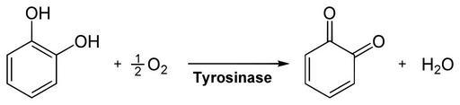 Keywords: Reaction Tyrosinase.svg en Catalysis of the Tyrosinase de Tyroninase katalyisert die Oxidation von Catechol in Benzochinon own Yikrazul 1 9 08 Oxidoreductases Copper complexes Enzyme reactions Tyrosinase