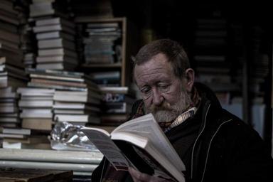 Keywords: reading bookworm man books learning literature solitude stacks quiet time absorbed