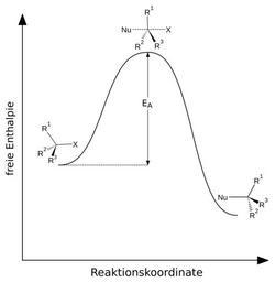 | Keywords: Reaktionskoordinate der SN2-Reaktion.svg ValidSVG reaction coordinate of the S<sub>N</sub>2 reaction a Nucleophilic substitution in german de Reaktionskoordinate der S<sub>N</sub>2-Reaktion eine Art der Nukleophilen Substitution 2012-07-26 own inkscape Minihaa cc-zero Uploaded with UploadWizard SN2 reactions Potential energy |