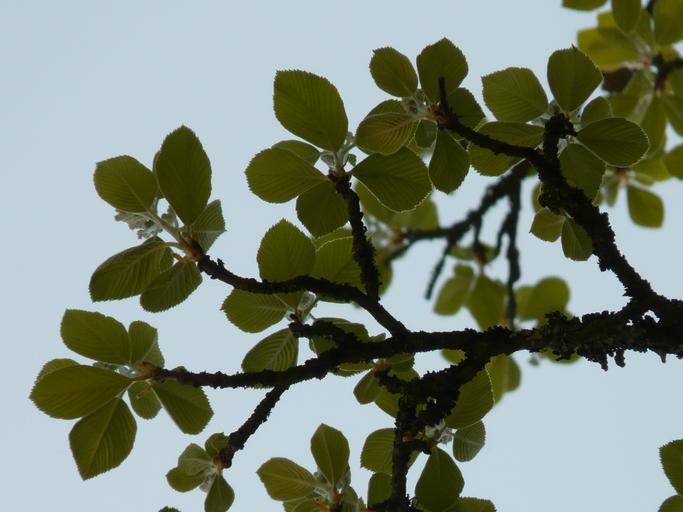 Keywords: real whitebeam haw tree leaves back light airy nature white sheets bush plant