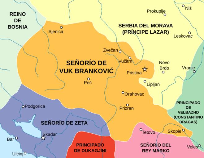 | Keywords: Realm of Brankovic-es.svg Realm of Branković was one of the states that emerged from the collapse of the Serbian Empire in the 14th century 2016-11-06 Realm of Brankovic png Central balkans 1373 1395V1 svg Realm of Brankovic png PANONIAN Central balkans 1373 1395V1 svg Rowanwindwhistler derivative work Rowanwindwhistler other versions PD-user-w PANONIAN SVG maps showing history in Spanish Maps of the history of Kosovo in the Middle Ages Maps of the history of Serbia in the 14th century Maps of the history of the Republic of Macedonia in the Middle Ages Realm of Vuk Branković |
