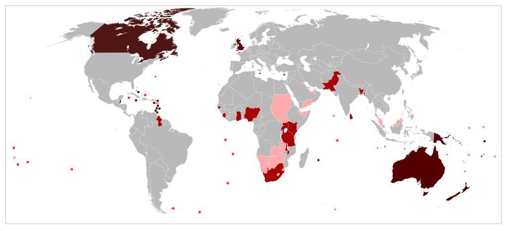 | Keywords: Realms territories and protectorates of Elizabeth II.svg  en The realms territories and protectorates over which Elizabeth II reigned from 1952 <br />Deep brown Current realms as of 2011 <br />Strong red Former realms became republics between 1956 and 1992 <br />Light red British Overseas Territories Crown dependencies Sovereign Base Areas Australian external territories and the territories and associated states of New Zealand as of 2011 <br />Pink Former territories dependencies and protectorates most recent lost in 1997 <br />Antarctic claims in abeyance since 1961 are not shown Self-made; base map derived from File Commonwealth realms 1992 svg User DrKiernan 2011-03-31 Cc-zero Commonwealth of Nations Elizabeth II of the United Kingdom |