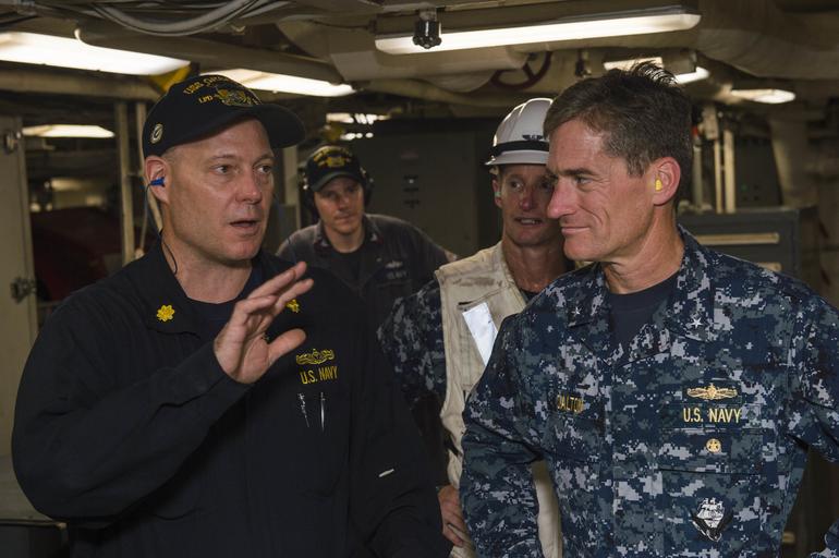 Keywords: Rear Adm. Dalton visits Green Bay 160818-N-XM324-159.jpg en 160818-N-XM324-159 OKINAWA Japan Aug 18 2016 Lt Cmdr Donovan Wortham chief engineer of the amphibious transport dock ship USS Green Bay LPD 20 gives a tour of the ships engineering spaces to Rear Adm Marc Dalton Commander Amphibious Force U S 7th Fleet Green Bay part of the Bonhomme Richard Expeditionary Strike Group is operating in the U S 7th Fleet area of operations in support of security and stability in the Indo-Asia-Pacific region U S Navy photo by Mass Communication Specialist 3rd Class Patrick Dionne/Released <br>Unit Navy Media Content Services 2016-08-18 Petty Officer 3rd Class Patrick Dionne https //www dvidshub net/image/2818786/rear-adm-dalton-visits-green-bay 160818-N-XM324-159 2016-08-26 00 14 OKINAWA JP PD-USGov-Military-Navy USS Green Bay LPD-20 Images from DoD uploaded by Fæ |