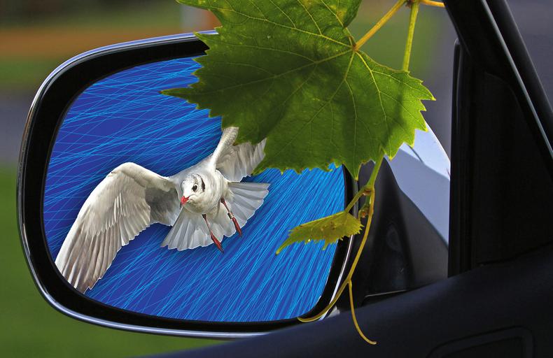 Keywords: rearview mirror car mirror car assembly abstraction white bird foliage virtuoso technique and great reflection grape leaf imagination wallpaper the background mirror hint