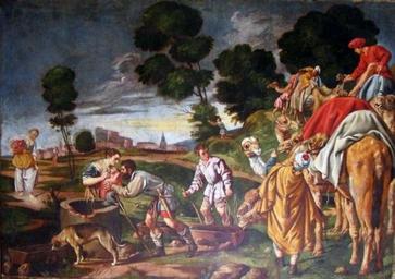 | Keywords: Rebeca da de beber a Eliezer, del taller de Pedro de Orrente (Museo de León).jpg La obra representa a Rebeca dando de beber al criado Eliezer y forma parte de la serie de nueve lienzos sobre Abraham Isaac y Jacob que se encuentra en el Museo de León y que fue ejecutada por el taller de Pedro de Orrente en el siglo XVII Siglo XVII Pintura en tela Size cm 132 92 Institution Museum of León http //ceres mcu es/pages/Main accession number 0100 http //ceres mcu es/pages/Main PD-old-100 Paintings of Rebecca Eliezer Paintings by Pedro de Orrente's atelier in the Museum of León |