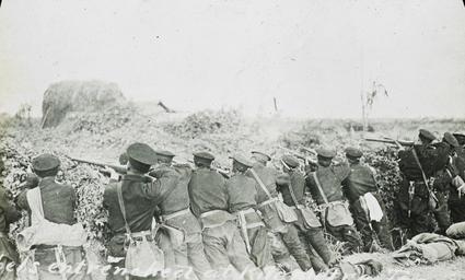 | Keywords: Rebels Entrenched at Kilometre Ten, China, 1911 (IMP-CSWC47-LS1-46).jpg en <br> Rebels Entrenched at Kilometre Ten China 1911 Black and white lantern slide picturing entrenched rebel forces firing at Imperial troops from behind their lines at kilometre ten during the 1911 rebellion against the Qing dynasty from October to December 1911 Kilometre ten perhaps refers to the distance from the centre of the city of Hankou and was a rebel battle station attacked and taken by Qing troops in late October 1911 This slide comes from a collection held by the Church of Scotland and generated by the medical missionary Charles Somerville who worked for the London Missionary Society in Hankou from 1904 to 1914 Photographer Unknown Filename IMP-CSWC47-LS1-46 tif Coverage date 1911 Subject unesco Revolutions; Political movements Part of collection International Mission Photography Archive ca 1860-ca 1960 Part of subcollection Photographs from the Centre for the Study of World Christianity University of Edinburgh U K ca 1900-ca 1940s Repository name Centre for the Study of World Christianity Archival file Volume4/IMP-CSWC47-LS1-46 tif Geographic subject city or populated place Wuhan Repository address The University of Edinburgh School of Divinity New College Mound Place Edinburgh EH1 2LX United Kingdom Geographic subject country China Format aacr2 lantern slides 8 2 x 8 2cm Geographic subject continent Asia Rights Contact the repository for details Part of series Church of Scotland Slide and Visual Collection; Charles Somerville CSWC47-LS1 Repository email divinity-CSWC ed ac uk Date created 1911 Publisher of the digital version University of Southern California Libraries Subject aat genre exterior views Format aat lantern slides; photographs Geographic subject state Hubei Access conditions http //www ed ac uk/schools-departments/divinity/research/centres/world-christianity/collections-resources Geographic subject military sites File CSWC47/LS1/46 Contributor Photo Department Tientsin Hui Wen Academy Tientsin China Subject lcsh Rebellions; New Army China ; soldiers 1911 date created author http //digitallibrary usc edu/cdm/ref/collection/p15799coll123/id/78425 PD-old-70-1923 Magic lantern images Images from USC Digital Library uploaded by Fæ International Mission Photography Archive ca 1860-ca 1960 Wuhan Battle of Yangxia |