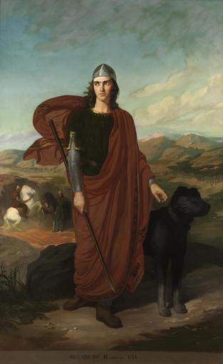 | Keywords: Recaredo II, rey de los Visigodos (Museo del Prado).jpg Retrato imaginario de Recaredo II 621 rey de los Visigodos e hijo y succesor del rey Sisebuto Ca 1858 oil canvas Size cm 140 225 Institution Museo del Prado Depositado en el Ministerio de Cultura https //www museodelprado es/coleccion/obra-de-arte/recaredo-ii/503171a3-cc6a-47ef-a84c-f42a2f6c5075 object history exhibition history credit line accession number P05075 https //content1 museodelprado es/imagenes/Documentos/imgsem/50/5031/503171a3-cc6a-47ef-a84c-f42a2f6c5075/776339d5-1dbd-419a-96f1-6553768f0c40 jpg PD-old-100 Recaredo II Francisco Aznar 19th-century paintings in the Prado Museum Uploaded with UploadWizard Chronological series of Kings of Spain commissioned by Isabella II |