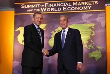| Keywords: Recep Tayyip Erdoğan and George W. Bush.jpg en U S President George W Bush welcomes Turkish Prime Minister Recep Tayyip Erdogan to the Summit on Financial Markets and the World Economy National Building Museum Washington D C tr ABD Başkanı George W Bush Finansal Piyasalar ve Dünya Ekonomisi Zirvesi için Ulusal Yapı Müzesin'de bulunan Recep Tayyip Erdoğanı karşılıyor Washington D C 2008-11-15 08 50 36 http //georgewbush-whitehouse archives gov/news/releases/2008/11/images/20081115_p111508cg-0161-515h html The White House White House photo by Chris Greenberg PD-USGov-POTUS PD-USGov Uploaded with UploadWizard Recep Tayyip Erdoğan in 2008 George W Bush in 2008 George W Bush and Recep Tayyip Erdoğan Photographs by Chris Greenberg |