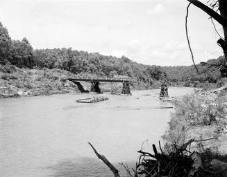 | Keywords: richmond va usa hurricane agnes hurricaneagnes virginia flood flooding natural disaster richmond va usa naturaldisasterrichmondvausa blackandwhite monochrome outdoor black and white The Rt. 654 bridge over the Tye River was washed out in the flash flooding casued by Hurricane Agnes. A pier from an older bridge is seen on the right. This crossing is located a half-mile from the Rt. 654 and Rt. 661 intersection, approximately 5 miles southwest of Norwood in Nelson County. No. 72-1439/33, Virginia Governor's Negative Collection, Library of Virginia. The Rt. 654 bridge over the Tye River was washed out in the flash flooding casued by Hurricane Agnes. A pier from an older bridge is seen on the right. This crossing is located a half-mile from the Rt. 654 and Rt. 661 intersection, approximately 5 miles southwest of Norwood in Nelson County. No. 72-1439/33, Virginia Governor's Negative Collection, Library of Virginia. |