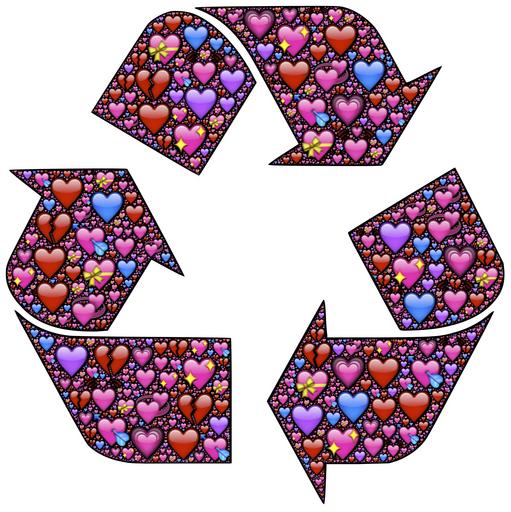 Keywords: recycle recirculate repeat circular neverending infinite hearts love loving emoji icons