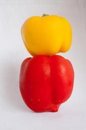 Keywords: red bell pepper red pepper sweet pepper paprika vegetable pepper food red raw nutrition diet delicious freshness vegetables eating yellow two
