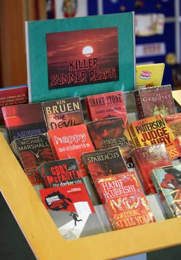 Keywords: red book display summer reading library