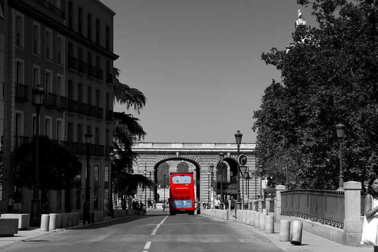 Keywords: red city beauty color street travel light architecture black white colors monochrome madrid bus colorful photography turistic road outdoor building Madrid, Spain. Calle Requena. Bus turistic. Madrid, Spain. Calle Requena. Bus turistic.