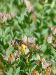 Keywords: red damsel damsel fly red insect fly bug damsel green nature wildlife animal damselfly leaf summer fauna wing life resting spring close colorful creature entomology garden plant yellow flower