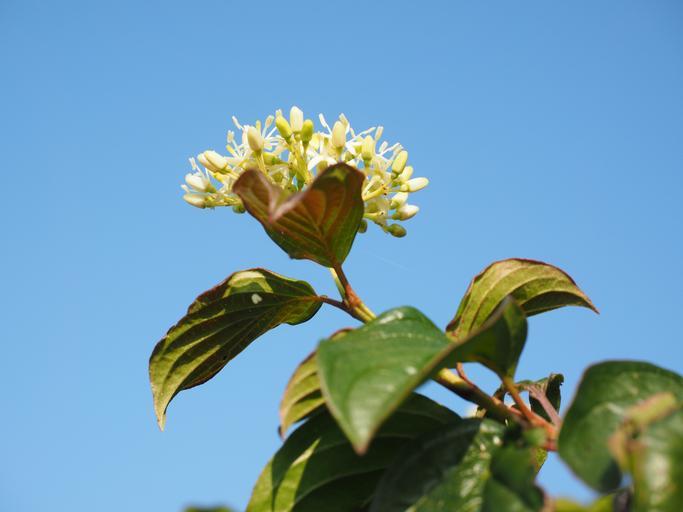 Keywords: red dogwood blossom bloom white leaves dogwood berries black fruits cornus horn shrub dogwood greenhouse cornaceae cornus sanguinea common dogwood red beinholz dog berry red hornstrauch