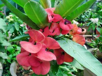 Keywords: red euphorbia milii flowers plant crown small nature flora floral growth garden houseplant leaf green beauty petal