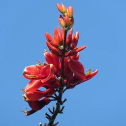 Keywords: red flower blue sky nature floral spring plant summer blossom color colorful bloom bright blooming vibrant season fresh botany botanical australian native grevillea