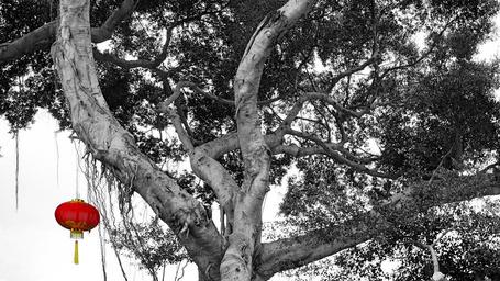Keywords: red lantern china lake area tree black and white