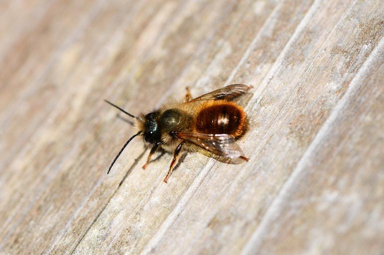 Keywords: red mason bee osmia rufa bee solitary small insect mud bee round-bottom close-up detail