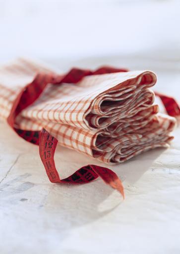 Keywords: napkin red view top kitchen cloth cotton isolated white saturated sample bright restaurant decor equipment utensils object folded texture color checkered textile material