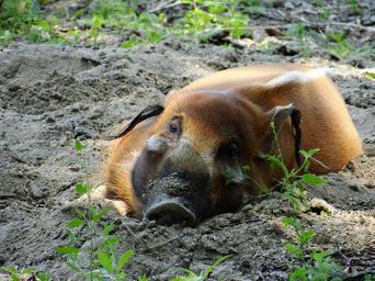Keywords: red river hog pig family pig mammal porcus hog wildlife napping swine snout africa animal nature