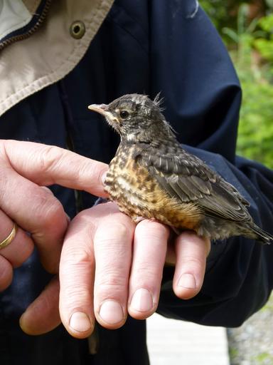 Keywords: red robin chick bird hand sitting nature animal feathered wild life