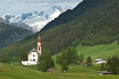 Keywords: sunlight nobody remote green chapel red flower horizontal field grass summer solitude alpine countryside church architecture quaint
