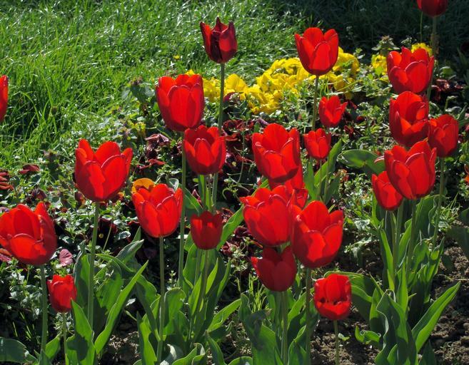 Keywords: red tulips tulips flowers bloom blossom nature spring flora