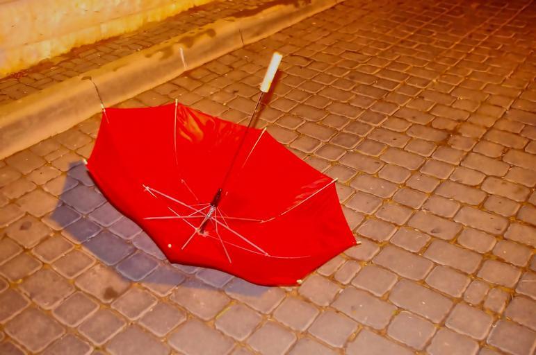 Keywords: red umbrella lost urban sad winter wind blown away lonely city storm rain weather